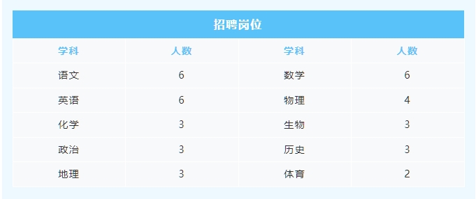 根据学校发展需要招聘高中优秀教师,真诚欢迎各界英才加盟,我们将为您提供良好的工作、学习和生活环境,巨大的发展空间和贴心的人才服务。