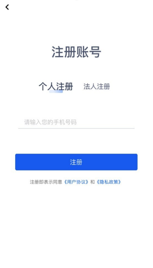 2.打开APP,点击注册账号,注册时输入手机号码并填写接收到的验证码,验证通过后设置密码,密码长度为8-18位字符,必须为数字、大小写字母、其他字符的3种以上组合。